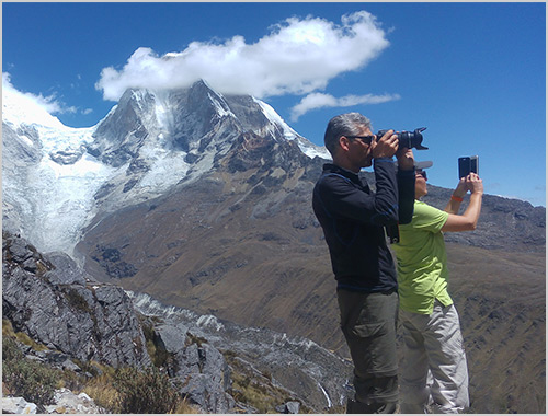 For acclimatization we visit the Cordillera Negra, where you can see a magnificent view of the Cordillera Blanca. We’ll have a chance to see wild ducks on the beautiful lake. Wilcacocha, because of its location, is an exceptional viewpoint for the Cordillera Blanca, allowing us to identify peaks (from north to south) Huandoy, Huascarán, Chopicalqui, Hualcan, Copa,Vallunaraju, Ocshapalca, Ranrapalca, Palcaraju, Churup, and many more.