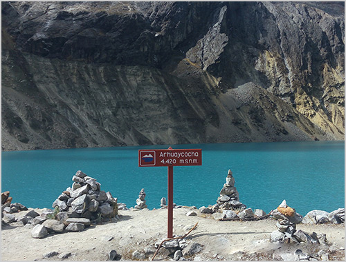 After a good breakfast, we’ll take our minibus to the Santa Valley, north of the small village of Yungay. To continue our acclimatization, we hike to Lake 69 (4,450 m) Fantastic views of the highest peaks in the Cordillera Blanca, and the deep blue lake surrounded by glaciers makes up for the effort needed to get here. About 6 hours are required for the round trip. We return in the afternoon to the Llanganuco gorge, where we establish our first camp in Yuracoral (3850 m). Overnight Camp (B/L/D)