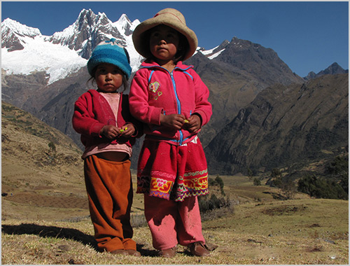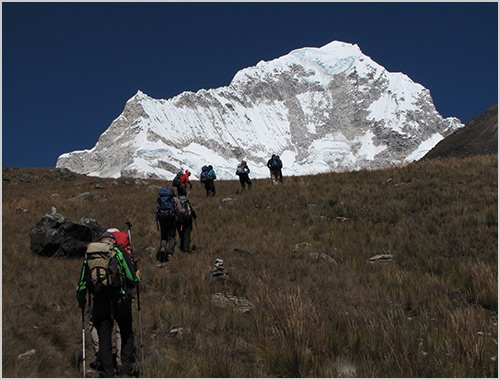 This is the beginning of the "Trans Cordillera Blanca Grande" trek around Alpamayo and Huascarán. We travel by vehicle through the Santa Valley and the villages of Carhuaz, Yungay and Caras to the ruins of Hualcayan, the remains of towers from the Inca age. We meet with our support team and their pack animals. Night in camp. Overnight Camp (B/L/D)