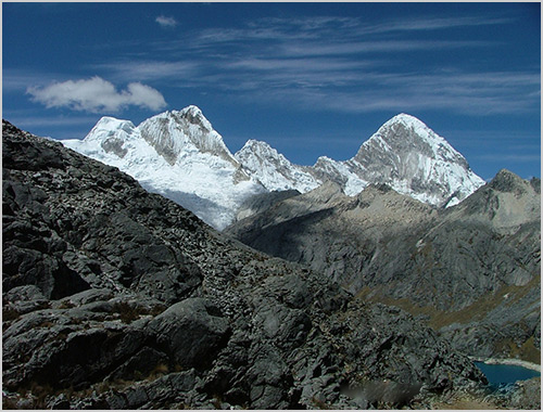 Trekking the Trans Cordillera Blanca: The Cordillera Blanca (White Range) is the largest and most popular mountain range in Peru, with 31 peaks more than 6,000 meters high, and more than half of the 6000 meter peaks in all of Peru. Here you’ll find the highest and most beautiful mountain in the tropics - snowcapped Huascaran (6,768 m) - as well as the popular and spectacular Alpamayo (5,947 m) - the stand outs in a region of superlatives!