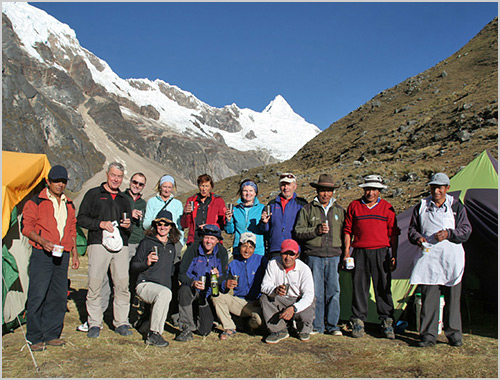 The first of a total of 8 days of trekking on the Cordillera Blanca tour begins by climbing the winding steep trail to Wishcash Camp. In the afternoon we can watch the beautiful sunset over the Cordillera Negra. Overnight Camp (B/L/D)