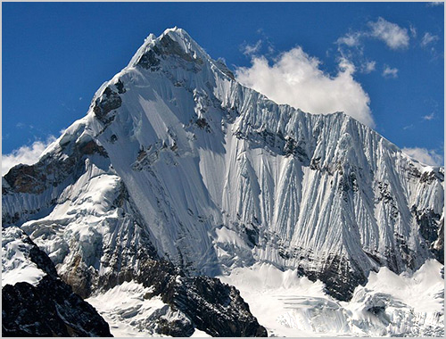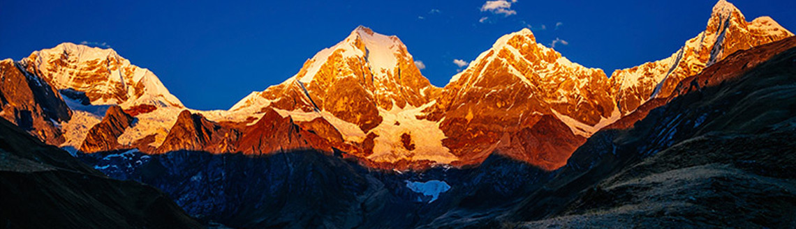 Laguna 69 has been called the most famous and well known lake in the Cordillera Blanca. Our trail winds through picturesque montane forests and a somewhat marshy area, always alongside a steep and daunting ridge. Behind us, the fortress-like peak of the ice giant Huascarán looms. Winding trails lead us past several wild foaming waterfalls to the lake. Laguna 69 is flanked by glacial moraines. Immediately above the deep blue surface of the lake, we see the steep ice walls of Chacraraju, one of the most beautiful, but also most difficult of the 6000 peaks in the Cordillera Blanca. After rest and pictures, we return to Huaraz.