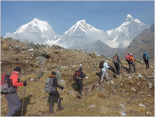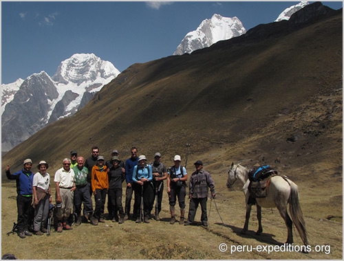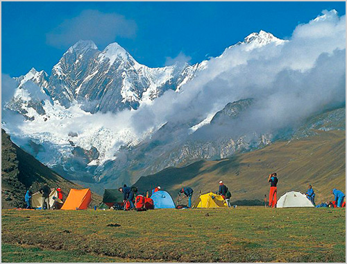 We hike along the river to the Calinca Valley (Rio Huayllapa) and continue to the village of Huayllapa (3,600 m). In the relatively low elevation, the trail takes us through dense vegetation with many colors of flowers - especially the shrubs called huishllac, named for their yellow color and open purple flowers, one of the sacred flowers of the Incas. We then have steep 3-hour climb to the north to camp in Huatiac (4290 m). Overnight Camp (B/L/D)