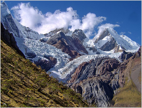 Leave Moraine Camp approximately 2-3 a.m. in order to reach the summit by about 8 a.m. This section of the moraine, at the upper part of the glacier, takes us 5-6 hours. After arriving at the summit, we will return to our starting point in the Llaca Valley where the bus waits to take us back to Huaraz.