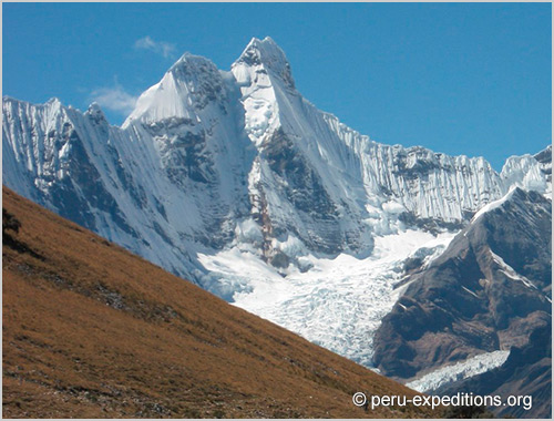 Option: Trekking without climbing Diablo Mudo. Short descent from Cashgapampa, turning into Angocancha Gorge (4350 m) and ascent to Yaucha Pass (4750 m), where we again stop and enjoy the impressive view. Steep descent toward the northeast in Huacrish Gorge (4,066 m), leading to Jahuacocha Lake (4066 m). Camp on the edge of the lake, with a view dominated by Rondoy, Jirishanca and Yerupajá.